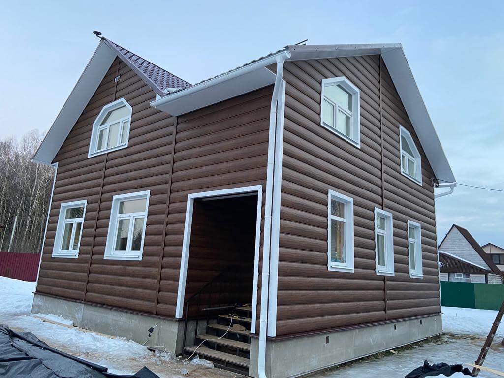Металлический сайдинг "Бревно Рубленое 4Д" или "ЦАРЬСАЙДИНГ" в оттенке "Каштан" на фасаде дома в Москве