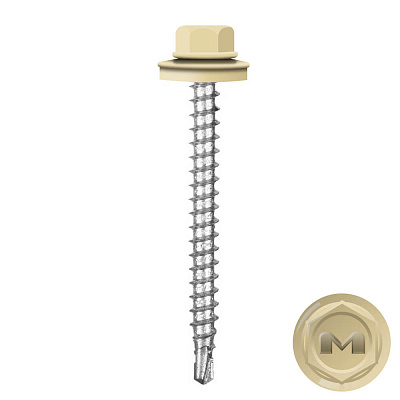 Кровельные саморезы Daxmer (Даксмер) по дереву цветом RAL1014 Бежевый 4,8*50мм окрашиваются УФ-стойкой полиэфирной порошковой краской. Цинковое антикоррозийное покрытие обеспечивает длительный срок службы саморезов (не менее 25 лет). Специальная металлическая шайба с ЕРDМ - уплотнителем обеспечивает плотное прилегание профилированного металла (кровли) к деревянной обрешетке, а также препятствует попаданию влаги.