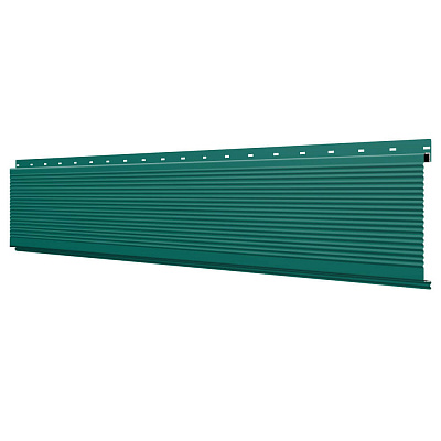 Линеарная потолочно-стеновая панель РИФЛЕНАЯ усиленная цвет RAL6026 Опал применяется в качестве софитов для подшивы крыши, наружной и внутренней отделки потолков, стен, фронтонов фасада дома в Минске.