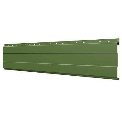 Линеарная потолочно-стеновая панель с ПОЛОСОЙ усиленная цвет RAL6002 Зеленый Лист применяется в качестве софитов для подшивы крыши, наружной и внутренней отделки потолков, стен, фронтонов фасада дома в Минске.